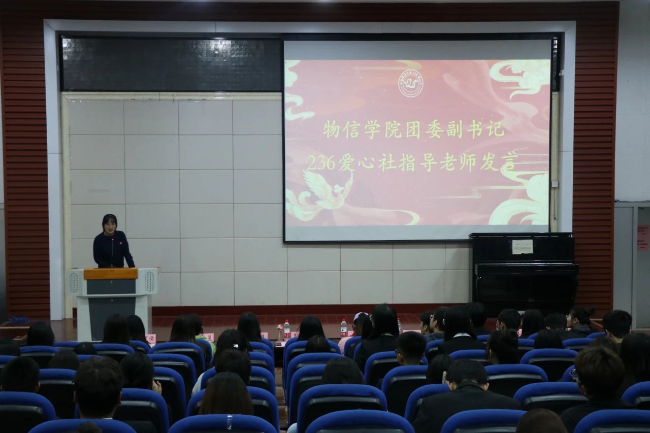 10月29日15:00,236爱心社在南区实验楼一层报告厅举办第十四届换届大会。mobile28365团委副书记、236爱心社指导老师马丽娜老师,校团委员工代表、校社联员工代表、各社团负责人、mobile28365团学组织主席团成员、236爱心社主要员工干部以及大一部分同学参加了会议。会议由236爱心社精神宣讲队成员许兆鑫主持。