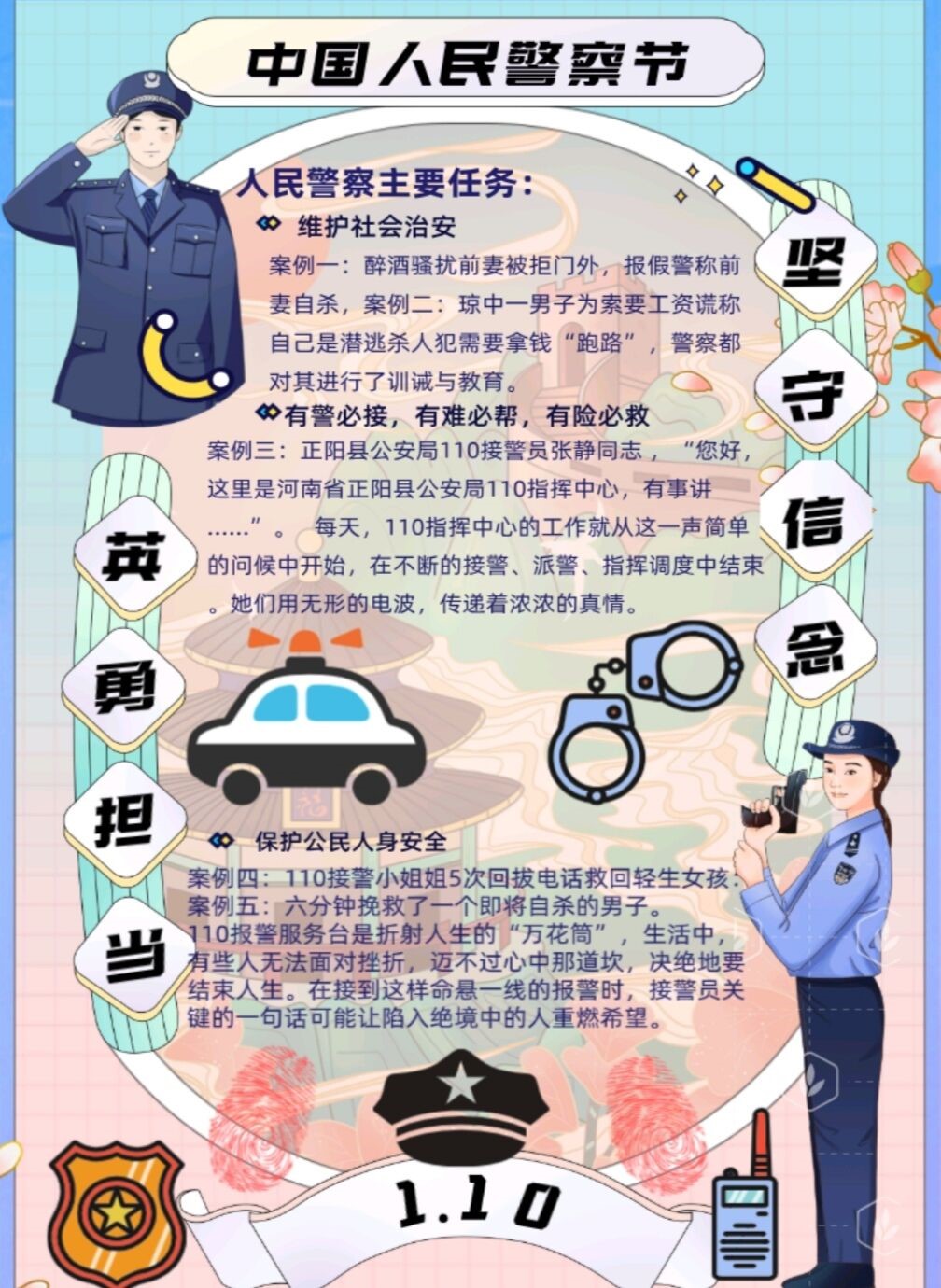 1月10日,是首个“中国人民警察节”,也是全国第35个“110宣传日”。为让同学们了解警察队伍、关注警察群体,236爱心社于1月10日至1月20日线上开展了以“情系公安,心中有法”为主题的宣传活动。
