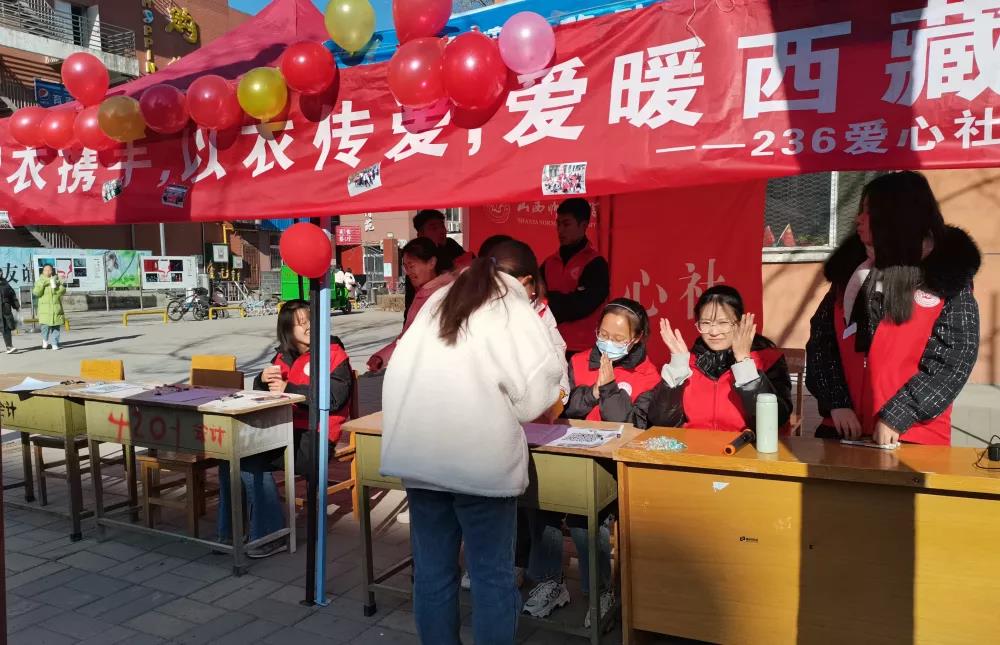 为了让西藏偏远地区的孩子们感受到来自老员工的温暖,2021年12月3日至7日,236爱心社在校园思政街举办了“因衣携手,以衣传爱,爱暖西藏”特色活动。