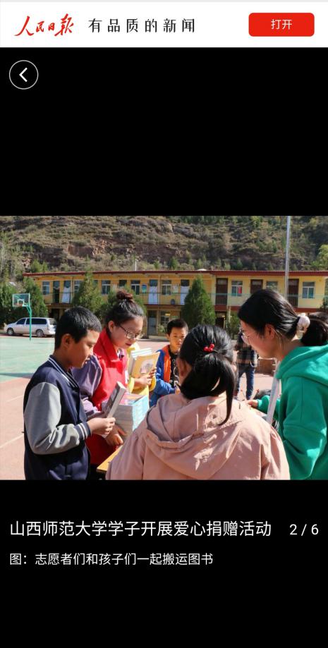 10月18日,《人民日报》客户端以“mobile28365正规网址学子开展爱心捐赠活动”为题,10月19日,山西青年报以“捐赠爱心物资助力精准扶贫”为题,分别报道了公司236爱心社在大宁三多小学开展的“全国扶贫日”爱心捐赠活动。