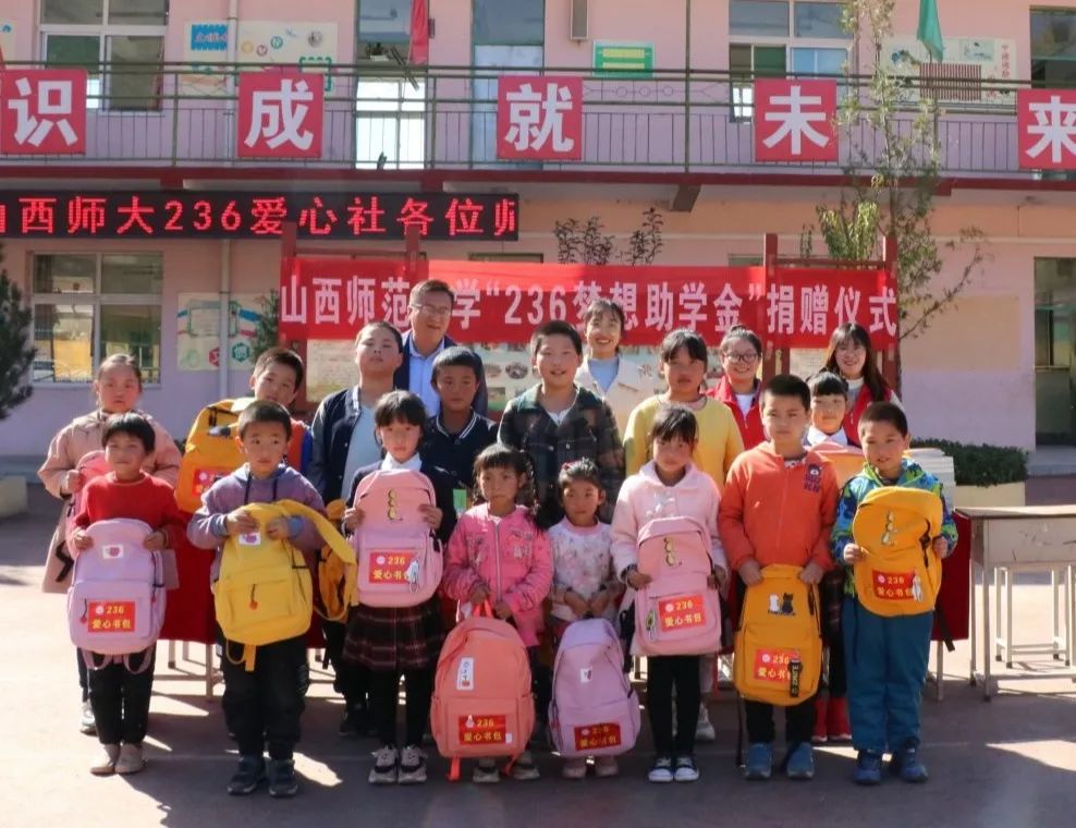 10月17日是第7个“全国扶贫日”,2020年10月16日,mobile28365正规网址236爱心社指导老师、mobile28365团委负责人马丽娜老师、社长田佳慧和临汾电视台记者一行6人,赴236爱心社第三座梦想书屋所在地——大宁县三多中心小学捐赠236梦想助学金、236爱心书包、236希望图书,共为全校16名小员工送去了3份梦想助学金,16个236爱心书包、文具用品,53册希望图书等爱心物资,累计价值5149.8元。这是236爱心社多年来持续响应国家精准教育扶贫和乡村振兴战略号召,走好精准教育扶贫之路,坚持奉献爱心的一项特色爱心活动。