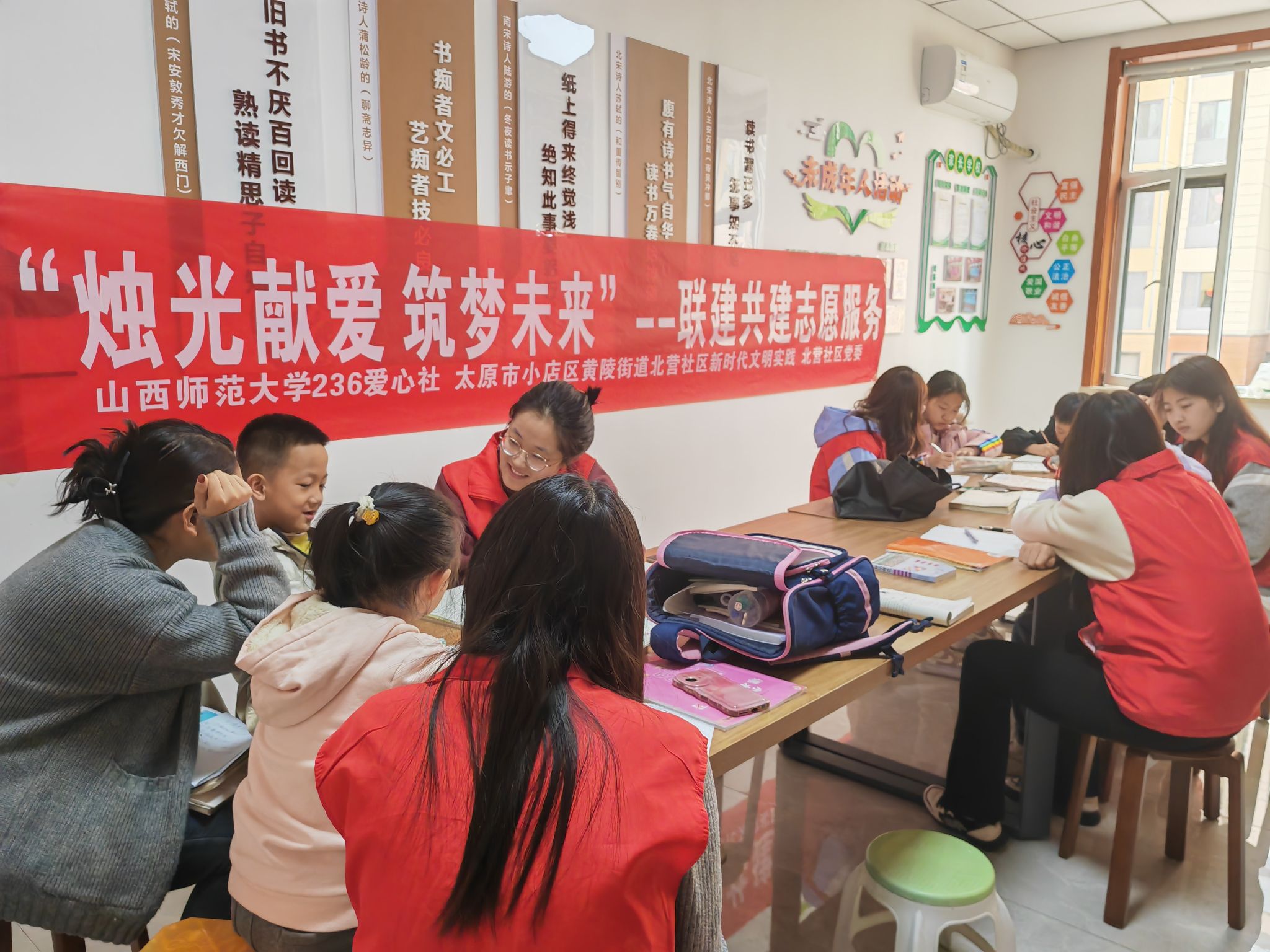 为了帮助北营社区员工提高学习效率,传递爱与温暖,公司236爱心社在3月16日前往太原市小店区黄陵街道北营社区新时代文明实践站开展了第一期“青春飞扬,心向烛光”社会实践活动。
