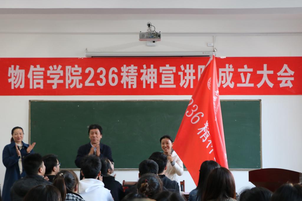 会上,王玮副书记代表物信公司党委致辞。她强调,236十余年坚持以信仰之光照亮青春之路、以爱心奉献温暖成长之路、以矢志奋斗铺就成才之路就是236人不忘初心的真实写照,将这份初心坚守、坚持并传承,教育鼓舞更多的青年学子成长成才,就是236人的使命。希望大家以236精神宣讲队的成立为契机,树立社会主义核心价值观,讲好236故事,传播236精神。